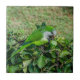 Malerei von wildem grünen Papagei auf dem grünen Busch in einem Park in Spanien. Auch bekannt als Mönchssittich oder Quakerpapagei