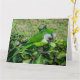 Malerei von wildem grünen Papagei auf dem grünen Busch in einem Park in Spanien. Auch bekannt als Mönchssittich oder Quakerpapagei
