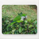 Malerei von wildem grünen Papagei auf dem grünen Busch in einem Park in Spanien. Auch bekannt als Mönchssittich oder Quakerpapagei