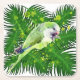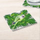 Grüner Papagei und Blätter aus Palmen, Aquarell Rechteckiger Pappuntersetzer