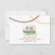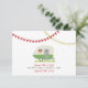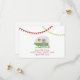 Eine Hochzeit speichert das Datum mit einer Abbildung eines Vintagen inspirierten grünen Wohnwagens auf grünem Gras geparkt. Der Trailer hat eine Fensterbox mit farbigen Gängen und schwarzen mit Augen Sushans. Oben gelbe und rote Schleife. Suchen Sie nach passenden Hochzeitseinladungen und mehr in Jill's Paperie.