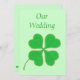 Gemälde aus grünem Shamrock, vierblättrigem Kleeblatt, in goldenen Punkten geschnitten, bedruckt auf Hochzeitseinladungen. Anpassen Sie den Text auf den Vorlagen einfach an.