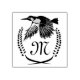 Ein illustrierter grüner Specker in Flug mit Weizenlaurel. Der weiße Platz im Lorbeer ist für ein Monogramm gedacht und kann für Ihren persönlichen Einstieg angepasst werden.