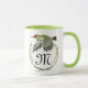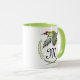 Ein illustrierter grüner Specker in Flug mit Weizenlaurel. Der weiße Platz im Lorbeer ist für ein Monogramm gedacht und kann für Ihren persönlichen Einstieg angepasst werden.