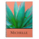 Wüstengarten-Notebook mit grünem, sukkulentem Bild auf pfirsichgrünem Hintergrund. Mit schwarzer Trimmfarbe und schwarzer, anpassbarer Schrift können Sie mit Ihren eigenen Informationen personalisieren. Dieses hübsche Objekt eignet sich hervorragend, um beim bleibe mit Ihren Schulaufgaben stilvoll bleibe.