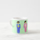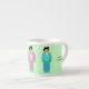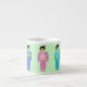 Grüner Tee bitte japanische Mädchen in Kimono Ocha O Kudasai Sippen Sie Ihren grünen Tee aus dieser kleinen Tasse
