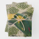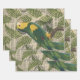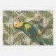 Dieses Vintag inspirierte Design zeigt einen gelben und grünen Papagei, der auf einem Ast sitzt. Der Hintergrund ist ein Vintager Katalog/Zeitungspapier mit grünen Blätter. Ideal für decoupage Kunstwerke, Papierhandwerke oder Geschenkverpackungen.