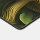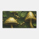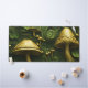 Grüner und goldener Pilz auf blumigen Schreibtischunterlage