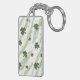 Eine irische rechteckige Schlüsselkette mit einem weißen und grünen Kleeblattmuster. © ArianeC Illustrationen