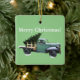 Sage Green Weihnachtsbaum Farm Square Ornament 2-seitig. Vintager Flachbett-LKW, mit einem Weihnachtsbaum an Bord. Der Rücken hat einen karierten Hintergrund und schneebedeckte Weihnachtsbäume. Macht einen schönen Akzent auf deinen Weihnachtsbaum. Perfektes Weihnachtsgeschenk für Freunde, Familie und Mitarbeiter.