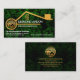 Eine exquisite grüne Waldlandschaft wird durch ein Imitat-Gold-Zuhause-Grenzdesign verstärkt. Hier finden Sie ein goldenes Zuhause-Logo, das Sie neben Ihrem prestigeträchtigen Namen und Jobtitel verwenden können. Unter dem Logo befinden sich der Firmenname, die Kontaktdaten und eine Slogan-Beschriftung. Bitte ändern Sie die Beschriftungen in den Slogan, um Ihre eigenen Servicebedürfnisse .