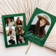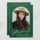 Elegante Ankündigung des Abschlusses mit dem Foto des Absolventen in einem Bogen-Rahmen mit grünem Aquarellhintergrund. "Graduate" wird in einem weißen, modernen Kalligrafieschrift mit dem Namen, der Schule und dem Abitur angezeigt, das unten gezeigt wird. Die Ankündigung des Foto Abschlusses kehrt zurück, um 6 quadratische Fotos im Rasterformat anzuzeigen.