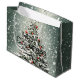 Grüner Weihnachtsbaum Bunte Ornamente Weiße Schnee Große Geschenktasche. Einzigartiges, schönes, stilvolles Design. Leicht personalisiert zu sein. Schriftart Stil, Größe und Farben können geändert werden. Matching-Elemente sind verfügbar.