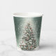 Grüner Weihnachtsbaum Bunte Ornamente Weißer Schne Pappbecher