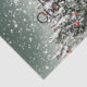 Grüner Weihnachtsbaum farbenfrohe Ornamente Weißes Schneegetuch Papier. Einzigartiges, schönes, stilvolles Design. Leicht personalisiert zu sein. Schriftart Stil, Größe und Farben können geändert werden. Matching-Elemente sind verfügbar.