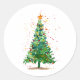 traditionelle Aquarellkunst eines grünen Weihnachtsbaumes mit bunten Ornamenten auf einem Aufkleber.