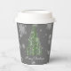 Genießen Sie Ihre Weihnachtsgetränke mit einem festlichen Set von grünen Weihnachtsbaumen und Schneeflocken Papier Cups. Das Design des Papierbechers zeichnet sich durch einen lebendigen künstlerischen Weihnachtsbaum mit abfallenden Schneeflocken und einem dunkelgrauen Hintergrund aus. Mit diesem Design sind auch zusätzliche Geschenk- und Urlaubsartikel erhältlich.