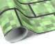 Dieses PackpapierAusrüstungsbeschreibungen ein Ziegelstein Ähnliches Muster mit einer Art erinnernd von der der klassischen 8-BitVideospiele. Sie kennzeichnet verschiedene grüne Abstufungen.
