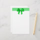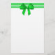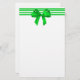 Festliches Feiertagsschreibenspapier, mit dem grünen Streifenlaufen horizontal an der Spitze des Briefpapiers und ein großer hübscher grüner Bogen. Fertigen Sie besonders an, um zusätzlichen Text oder Gebrauch auf Ihrem eigenen Drucker zu Hause hinzuzufügen. Reizendes Papier für Ihren jährlichen Weihnachtsbrief.