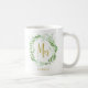 Diese elegante botanische Tasse besticht durch einen grünen Kranz aus Blätter, auf einem weißen Hintergrund, mit dem Wort "Mrs." in der Mitte der Imitate goldene Optik Typografie. Wir haben Kunst aus LABFreations benutzt.