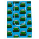 Grünes Elektrofahrzeug SUV Auto blau Hintergrund Mittlere Geschenktüte