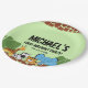 Passen Sie diese Papiertafel mit dem Namen und dem Party Ihres Kindes an. Safari-Thema mit Dschungelabbildungen, niedliche Giraffe, Zebra, Tiger und Elefantenabbildungen. Das Giraffenmuster wird durch andere Elemente dieser Sammlung fortgesetzt. Entdecken Sie das komplette Set aus unserem Shop. Der grüne Hintergrund auf der Platte kann mit dem Anpassungswerkzeug leicht verändert werden.