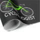 Lime Green Bike mit CYCOLGIST Text auf schwarzem Hintergrund. Die Hintergrundfarbe kann geändert werden.