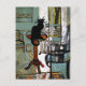 Grünes Fenster mit schwarzer Katze, Gracias, Text Postkarte