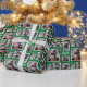 Verwenden Sie 5 Ihrer besten Fotos, um Ihr eigenes personalisiertes Packpapier zu erstellen. Diese grüne, weiße und schwarze Geschenkpackung hat einige einfache Schneeflocken und das Wort freudig ergänzt das Design.