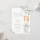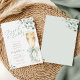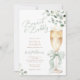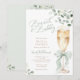 Diese elegante Brunch- und Bubbly-Hochzeitsduscheinladung enthält sanfte Wasserfarben-Grünpflanzen, Eukalyptusblätter und eine zarte grüne Schleife für einen frischen und romantischen Look.