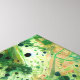 Eine dynamische abstrakte Komposition mit einer Reihe wirbelnder Formen und Muster in verschiedenen Farbtönen grün, schwarz und blau