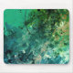 Eine dynamische abstrakte Komposition mit einer Reihe wirbelnder Formen und Muster in verschiedenen Farbtönen grün, schwarz und blau