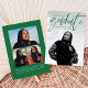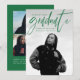 Moderne Abschluss-Ankündigungskarte mit dem bevorzugten Foto Ihres Absolventen auf der Vorderseite mit "Graduate" in einer grünen handgeschriebenen Schrift. Personalisieren Sie die Vorderseite der Ankündigung, indem Sie den Namen des Absolventen, den Schulnamen und das Abschluss Jahr. Die trendige Ankündigung des Abschlusses kehrt zurück, um weitere 3 Fotos mit Platz für Text wie Zukunftspläne, Abschluss Details, Party Details, etc. anzuzeigen. Die 4 Foto Abschluss Ankündigung ist perfekt für Absolventen der Highschool und der Uni.