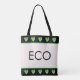 Niedliche und elegante Blätter in der grünen Herzform auf der beigen Tote Tasche. Ladys Handtasche, Einkaufstasche, Strandtasche, Mode Tote Tasche. Moderne beige, schwarze und grüne Tasche.