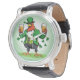 Uhr, Klassische Damenuhr mit schwarzen Lederarmband