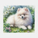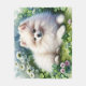 Ein bezaubernder, weißer Spitz, der ein Kleeblatt mit ein paar Kleeblättern legt. Ein niedliches St. Patrick's Day Geschenk für Spitz-Besitzer und Pom-Liebhaber.