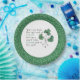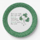 Eine Chic Papierplatte, mit grünem Kleeblatt-Blätter und einem Waliser-Sprichwort in den keltischen Skripten, auf einem weißen Hintergrund, umgeben durch ein ditzy Kleeblattmuster. Teil der Sammlung der Posh u. Painterly "Kleeblätter.
