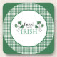 Ein Set von sechs quadratischen, korkgestützten Untersetzer, mit grünen Kleeblatt-Blätter und 'Proud to be Irish' in keltischen Schriften, auf einem weißen Hintergrund mit einem Karo Gingham-Grenze. Teil der Posh & Painterly 'Kleeblatts Kollektion.