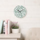 Grünes Kleeblätter Ditsy Muster auf weißer Große Wanduhr