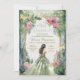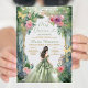 Grünes Kleid Rosa Blume 15 Mis Quince Einladung Quinceañera 15 Anos, 16. Geburtstag Goldschmetterling