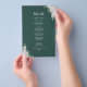 Erhöhen Sie Ihren Hochzeitsempfang mit dem Blumenmenü aus grünem Leaf. Mit einem eleganten Blumenmuster aus grünem Blatt kombiniert diese Karte ein herzliches Dankeschön mit Ihrem sorgfältig gepflegten Hochzeitsmenü. Es ist perfekt für eine naturlich inspirierte, botanische oder Gartenhochzeit geeignet und fügt dem Tischambiente jedes Gastes eine Touch der Eleganz hinzu. Lassen Sie sich mit Ihren Hochzeitsdetails persönlich verwöhnen und freuen Sie sich auf die köstliche Küche, die Ihre Gäste genießen werden. Es ist die ideale Mischung aus Stil und Funktion für eine unvergessliche Feier.