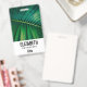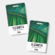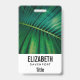 Abzeichen mit personalisiertem Namen mit einem Foto aus einem grünen tropischen Blatt mit einigen lebhaften Palmenfronten.