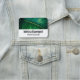 Ein Namensschild mit einem Foto aus einem grünen tropischen Blatt, das einige lebendige Palmenfronten zeigt.