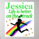 Das Leben ist besser auf der Strecke für diesen Champion Cross Country oder Marathon Runner. Thrill deinen phantastischen Runner mit dieser Inspiration und personalisiertem Running Poster. Der erste Platz Track and Field Girl sollte ein Sport Star sein. Besuchen Sie www.zazzle.com/mysportsstar um alle unsere stilvollen Track- und Field-Designs auf T-Shirts, Bekleidung, Schmuck, Trinkgeschirr, Schlafzimmerdekor, Plakaten und einer außergewöhnlichen Auswahl an Geschenken zu sehen. Unsere fantastischen Track and Running Designs machen das perfekte Geschenk für Geburtstage, Feiertage und jede Gelegenheit und werden Ihren Track Star dazu ermutigen, die beste Athletin zu sein, die sie sein kann.