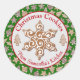 Hausgemachte Weihnachtskekse klassischer Rundaufkleber mit grünem Lebkuchengebäck im Hintergrund und Schneeflocken in der Mitte. Ideal für Ihre hausgemachten Backwaren in dieser Feriensaison. Fügen Sie einfach Ihren Namen zum Label hinzu und auch welche Art von Cookies oben.