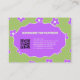 Eine grüne lila Y2K Blume Visitenkarte für eine handgefertigte Bekleidungsmarke mit einem groovy bohenhaften botanischen Blumenmuster mit einem Retro-whimsical Girly-Stil und einem QR-Code für die Modemarkierung.