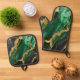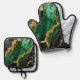 Grünes Marmormuster mit Gold Ofenhandschuh & Topflappen-Set