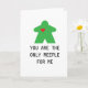 Ein süßes grünes Brettspiel-Meeple, das seine Liebe erklärt.