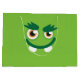 Ein grünes Monstergesicht mit orange Augen und buschigen Augenbrauen. Niedliche Tasche für irgendein Party!