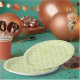 Frühlinggrün gemusterte Teller. Design kann auf passende Papierservietten übertragen werden.